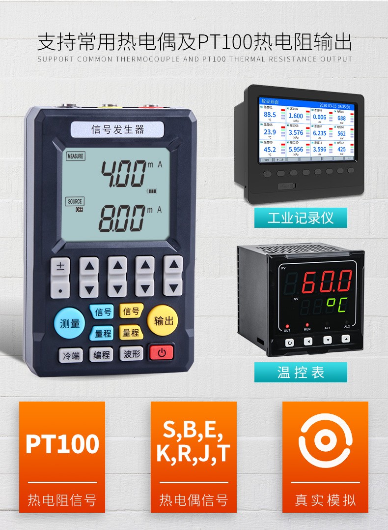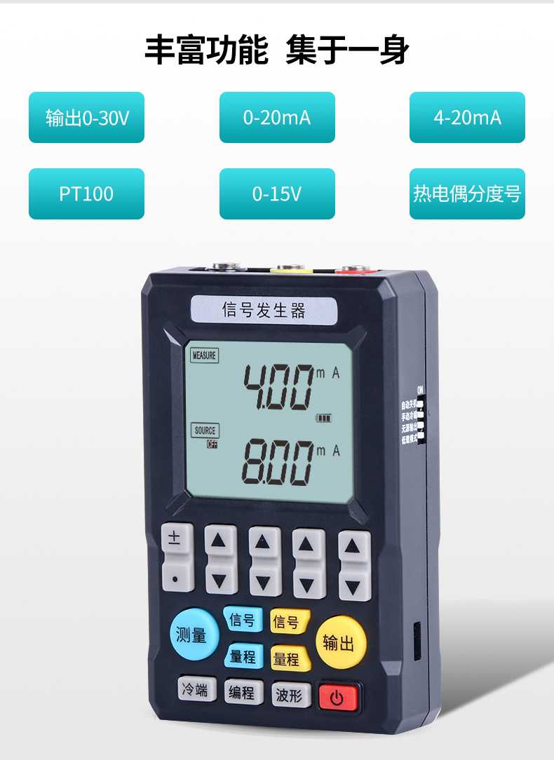 米科MIK-C703S信號發生器具有多種信號的測量和輸出功能,包括電壓、電流、熱電偶、熱電阻,采用高清LCD液晶屏和功能分明的硅膠按鍵,操作簡單,待機時間長,精度高,并且具有可編程輸出功能。廣泛應用于實驗室、工業現場PLC與過程儀表、電動閥門等的調試。