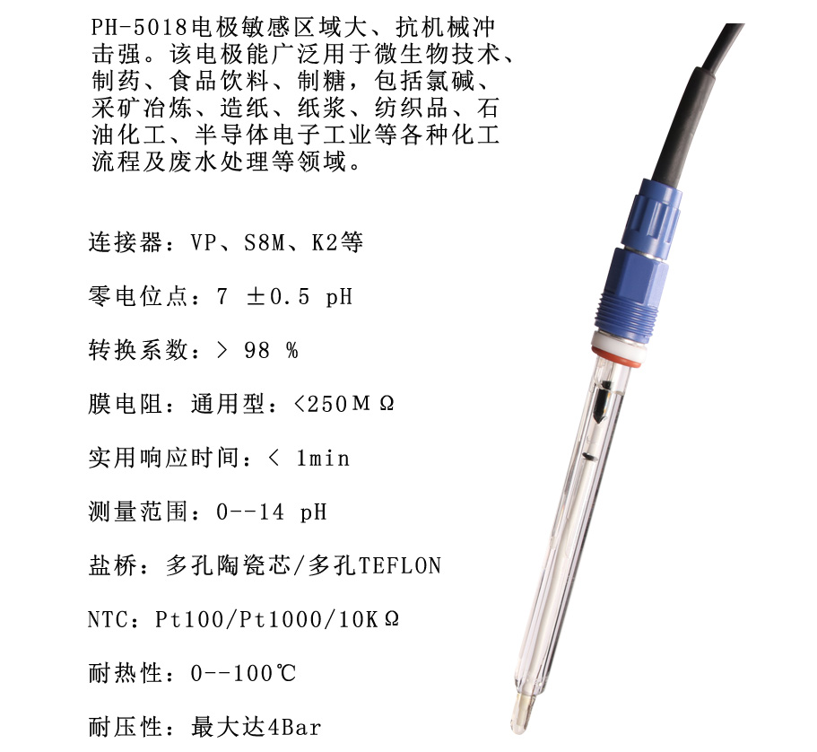 該電極能廣泛用于微生物技術、制藥、食品飲料、制糖,包括氯堿、采礦冶煉、造紙、紙漿、紡織品、石油化工、半導體電子工業等各種化工流程及廢水處理等領域。