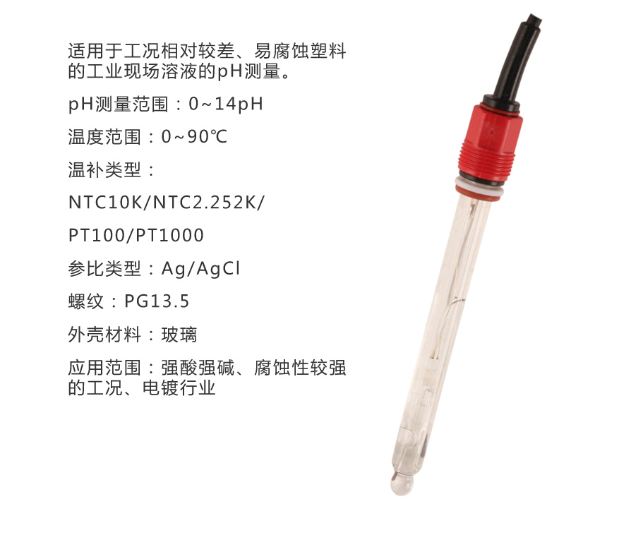 應用于紡織印染、工業廢水、自來水廠、污水處理廠、電鍍廢水等液體PH測量,以及高溫場合測量。