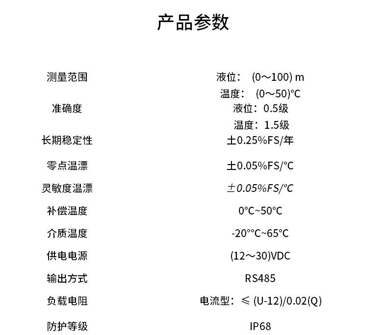 高精度測量:該變送器采用高性能擴散硅壓阻式壓力傳感器作為測量元件,能夠準(zhǔn)確測量液位深度及液體溫度,實現(xiàn)高精度測量。