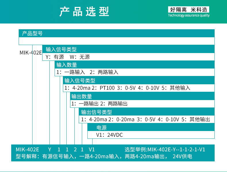 MIK-402E系列信號隔離器,電壓、電流隔離器將直流電壓或電流信號經過隔離傳送,轉換成所需的信號給其他儀表。可以與單元組合儀表及DCS、PLC等系統配套使用,給予現場儀表信號隔離、信號轉換、信號分配、信號處理等,從而提高工業生產過程自動控制系統的抗干擾性能力,保證系統的穩定性與可靠性。本產品品種分為一進一出、一進二出、一進三出、一進四出、二進二出,且輸入、輸出、電源三端隔離。并且大量運用于配電柜和隔離箱等各種工業場合。