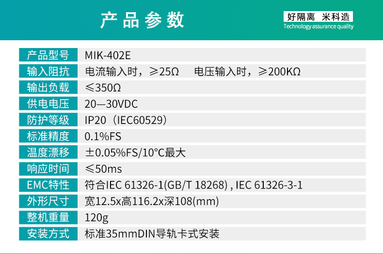 MIK-402E系列信號隔離器,電壓、電流隔離器將直流電壓或電流信號經過隔離傳送,轉換成所需的信號給其他儀表。可以與單元組合儀表及DCS、PLC等系統配套使用,給予現場儀表信號隔離、信號轉換、信號分配、信號處理等,從而提高工業生產過程自動控制系統的抗干擾性能力,保證系統的穩定性與可靠性。